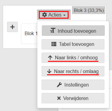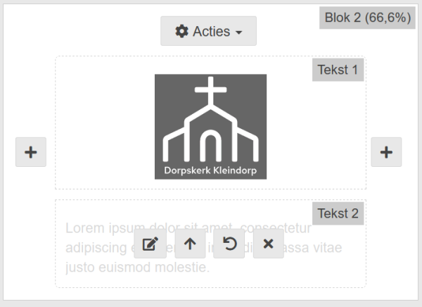 Onder het kopje Acties kunt u diverse instellingen van dit tekstblok instellen: