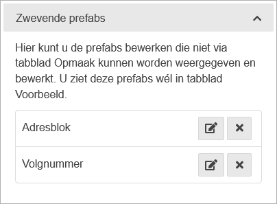 U vindt deze twee blokken terug (en kunt ze bewerken en verwijderen) onder het kopje 'Zwevende prefabs'