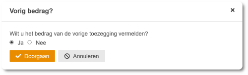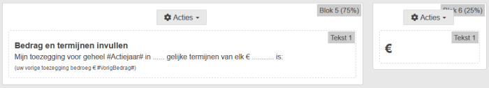 Met de prefab Bedrag invullen plaatst u twee blokken met daarin voorgedefinieerde tekst en variabelen waarin de geregistreerde de toezegging en termijnbedragen kan invullen.