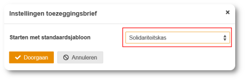 Het is beter om bij het starten van een sjabloon te kiezen voor Type toezeggingsbrief en vervolgens voor Solidariteitskas