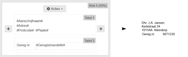 Deze variabelen worden bij het genereren vervangen door de gegevens van de betreffende geregistreerde.